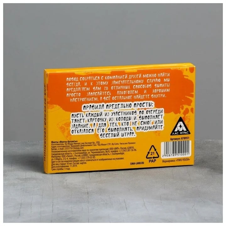 Купить игра для компании "фанты буханты" 20 карт от 100 руб. с доставкой до пункта выдачи в Прокопьевске. Интернет магазин ДекаМаркет. Оплата при получении.